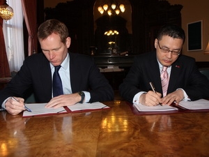 | Ông Vũ Quang Minh và ông Jeremy Browne tại lễ ký. (Nguồn: flickr.com) |