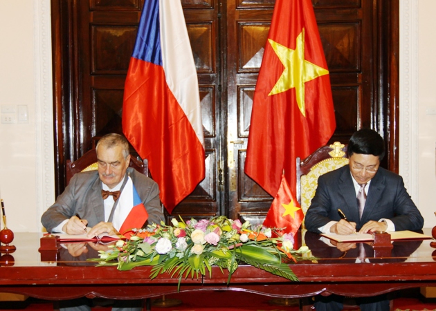 Trước đó, vào sáng nay, Bộ trưởng Bộ Ngoại giao Phạm Bình Minh có cuộc hội đàm với Phó Thủ tướng, Bộ trưởng Bộ Ngoại giao Cộng hòa Séc Karel Schwarzenberg. Tại hội đàm, Bộ trưởng Ngoại giao Phạm Bình Minh nhấn mạnh chuyến thăm của ông Karel Schwarzenberg tới Việt nam là mốc quan trọng trong việc tiếp tục củng cố, thúc đẩy quan hệ hữu nghị truyền thống và hợp tác nhiều mặt, đặc biệt là trong lĩnh vực kinh tế - thương mại giữa hai nước trong giai đoạn mới. Bộ trưởng Phạm Bình Minh khẳng định Việt Nam luôn ủng hộ và thúc đẩy mối quan hệ giữa Cộng hòa Séc cũng như các nước Liên minh châu Âu (EU) với các nước ASEAN và các nước châu Á nói chung.