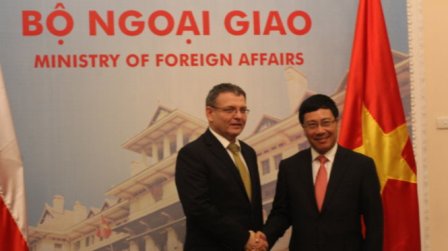 Phó Thủ tướng, Bộ trưởng Ngoại giao Phạm Bình Minh và Bộ trưởng Ngoại giao Cộng hòa Czech Lubomír Zaorálek nhất trí như vậy trong cuộc hội đàm chiều 23/10, diễn ra tại Hà Nội. Trong hội đàm, hai bên trao đổi về các phương hướng, biện pháp tăng cường hợp tác song phương trên các lĩnh vực: chính trị - ngoại giao, kinh tế - thương mại, văn hóa, giáo dục – đào tạo, hợp tác phát triển, quốc phòng, an ninh. Phó Thủ tướng, Bộ trưởng Ngoại giao Phạm Bình Minh cho biết: “Tôi đã nêu ra 8 đến 9 lĩnh vực hợp tác giữa Việt Nam và Cộng hòa Czech. Tất cả các lĩnh vực này đều quan trọng vì giữa 2 nước có mối quan hệ truyền thống và đều có nhu cầu hợp tác thúc đẩy phát triển kinh tế, đặc biệt là thương mại. Chúng tôi cũng trao đổi rất nhiều về việc làm sao tăng cường hơn nữa quan hệ kinh tế - thương mại giữa Việt Nam và Cộng hòa Czech. Thương mại giữa 2 bên thời gian qua, đặc biệt trong năm 2015 đã tăng trưởng rất nhanh. Chỉ riêng trong 7 tháng đầu năm 2015 đã tăng 66% so với cùng kỳ năm 2014. Đây là tín hiệu rất tốt cho quan hệ thương mại giữa 2 nước”.