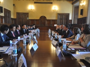 | Quang cảnh buổi làm việc giữa đoàn Bộ Tài chính Việt Nam và Bộ Kinh tế và Tài chính Italy. (Ảnh: Vietnam+) |