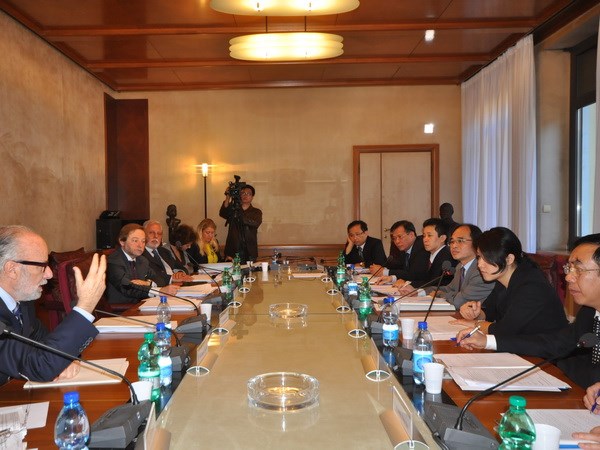 | Quang cảnh buổi làm việc của đoàn Kiểm toán Nhà nước Việt Nam và lãnh đạo Tòa Thẩm kế Italy. (Ảnh: Phạm Thành/Vietnam+) |