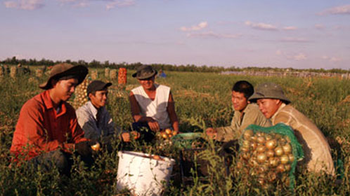 | Nông dân Việt Nam thu hoạch hành củ trên cánh đồng Volga Việt |