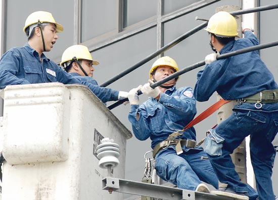 | Công nhân điện lực TPHCM cải tạo lưới điện. Ảnh: CAO THĂNG/ Báo Sài gòn giải phóng |
