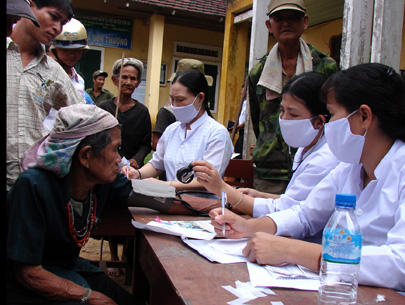 Bác sĩ Bệnh viện Chợ Rẫy khám bệnh, phát thuốc cho đồng bào dân tộc H’Rê, xã Sơn Thượng, huyện Sơn Hà- Ảnh: Minh Th/ tuoitre