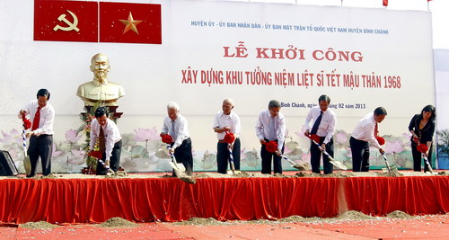 (VOV5) - Ngày 1/2, Uỷ ban nhân dân huyện Bình Chánh và Sở Văn hóa, Thể thao và Du lịch thành phố Hồ Chí Minh khởi công xây dựng Khu tưởng niệm liệt sĩ Tết Mậu Thân 1968 nhân dịp kỷ niệm 45 năm cuộc tổng tiến công và nổi dậy mùa xuân năm 1968.