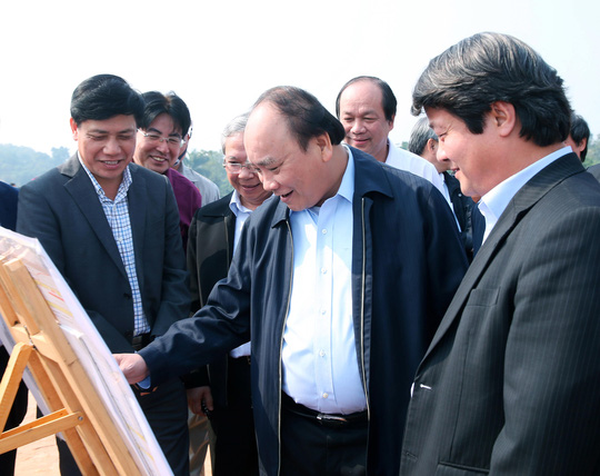 | Trong chuyến thăm và làm việc tại tỉnh Phú Thọ, sáng 4-12, Thủ tướng Nguyễn Xuân Phúc thị sát công trường thi công nút giao IC7, đường cao tốc Hà Nội - Lào Cai Ảnh: TTXVN |