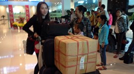 | Cô dâu Việt sống tại Đài Loan về quê ăn tết từ chuyến bay Đài Bắc (Đài Loan, Trung Quốc )-Cần Thơ tại sân bay Cần Thơ (ảnh: KT) |