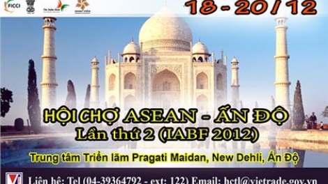 (VOV5)- Trong khuôn khổ các hoạt động kỷ niệm 20 năm quan hệ đối tác và 10 năm nâng cấp quan hệ đối tác lên mức cấp cao giữa Hiệp hội các quốc gia Đông Nam Á (ASEAN) và Ấn Độ, Hội chợ ASEAN-Ấn Độ lần thứ hai (AIBF – 2012) sẽ diễn ra tại New Delhi từ ngày 18 - 20/12.