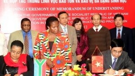 (VOV5) - Sáng 10/12, tại Hà Nội, Bộ Nông nghiệp và Phát triển nông thôn Việt Nam và Bộ Môi trường và Nguồn nước Cộng hòa Nam Phi ký biên bản ghi nhớ về Bảo tồn và Bảo vệ đa dạng sinh học giữa Việt Nam và Cộng hòa Nam Phi.