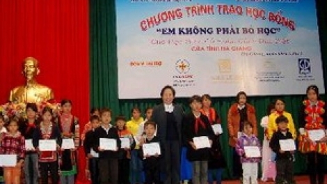 (VOV5) - Ngày 9/12, Phó Chủ tịch nước Nguyễn Thị Doan, Chủ tịch Hội đồng Quỹ bảo trợ trẻ em Việt Nam đã trao tặng 130 suất học bổng (mỗi suất 3 triệu đồng) cho 130 trẻ em hiếu học có hoàn cảnh đặc biệt khó khăn của tỉnh Hà Giang.