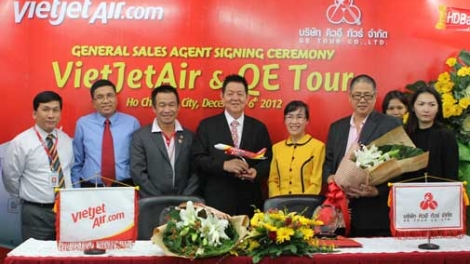 (VOV5) - Chào mừng đường bay quốc tế TPHCM – Bangkok khai trương, VietJet Air khuyến mãi giá siêu tiết kiệm chỉ 12.000 đồng. Chương trình siêu khuyến mại với giá vé 12.000 đồng sẽ mở bán tại website www.vietjetair.com vào ngày 12-12-2012 từ 9h đến 23h59 cho các chuyến bay khởi hành từ 10-2-2013 đến 31-12-2013.