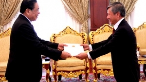 (VOV5) - Ngày 5/12, tại Thủ đô Vientiane, Lào, Đại sứ Việt Nam tại Lào Nguyễn Mạnh Hùng đã trình Quốc thư Tổng Bí thư Chủ tịch nước Lào Chummaly Sayasone.