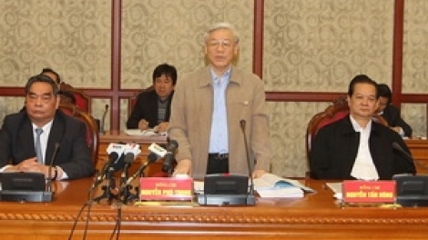 (VOV5)- Sáng nay, tại Trụ sở Trung ương Đảng, Bộ Chính trị làm việc với Ban Thường vụ Tỉnh ủy Khánh Hòa về Đề án phát triển tỉnh Khánh Hòa đến năm 2020. Tổng Bí Thư Nguyễn Phú Trọng chủ trì buổi làm việc.