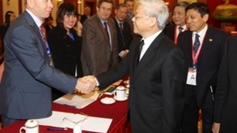 (VOV5) - Chiều nay, 27/11, Tổng Bí thư Ban chấp hành Trung ương Đảng Cộng sản Việt Nam Nguyễn Phú Trọng tiếp Đoàn đại biểu các học giả tiêu biểu của 28 quốc gia và vùng lãnh thổ đang tham dự Hội thảo quốc tế Việt Nam học lần thứ tư với chủ đề “Việt Nam trên con đường hội nhập và phát triển bền vững”.