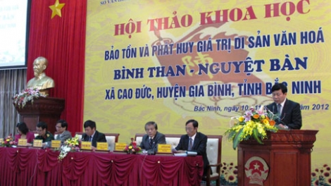 (VOV5) - Ủy ban nhân dân tỉnh Bắc Ninh phối hợp với Viện Sử học (thuộc Viện Khoa học xã hội Việt Nam) ngày 11/11 tổ chức hội thảo khoa học “Bảo tồn và phát huy giá trị di sản văn hóa Bình Than – Nguyệt Bàn, xã Cao Đức, huyện Gia Bình, tỉnh Bắc Ninh”