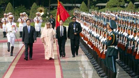 (VOV5)- Nhận lời mời của Thủ tướng Nguyễn Tấn Dũng, hôm nay, Thủ tướng Chính phủ nước Cộng hòa nhân dân Bangladesh Sheikh Hasina sang thăm chính thức Việt Nam. Sau lễ đón chính thức, tại phủ Chủ tịch, Thủ tướng Nguyễn Tấn Dũng cùng Thủ tướng Sheikh Hasina tiến hành hội đàm, cùng nhau trao đổi sâu rộng định hướng và các biện pháp nhằm thắt chặt quan hệ hữu nghị truyền thống và đẩy mạnh hợp tác nhiều mặt giữa Việt Nam và Bangladesh, nhất là trên các lĩnh vực thế mạnh của mỗi nước.