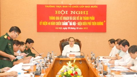 (VOV5) - Hôm nay 19/10, tại Hà Nội, Phó Thủ tướng Chính phủ Nguyễn Thiện Nhân, Trưởng Ban Tổ chức cấp Nhà nước Lễ kỷ niệm 40 năm chiến thắng “Hà Nội – Điện Biên Phủ trên không” (1972- 2012) chủ trì hội nghị rà soát, thông qua các kế hoạch và các đề án thành phần phục vụ buổi lễ.
