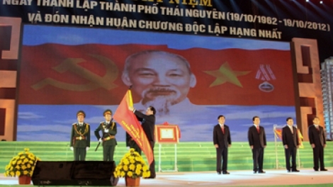 (VOV5) - Thành uỷ, HĐND - UBND - Uỷ ban MTTQ Việt Nam Thành phố Thái Nguyên tối 19/10 tổ chức lễ kỷ niệm 50 năm Ngày thành lập Thành phố Thái Nguyên (19/10/1962 - 20/10/2012) và đón nhận Huân chương Độc lập hạng Nhất do Đảng và Nhà nước trao tặng.