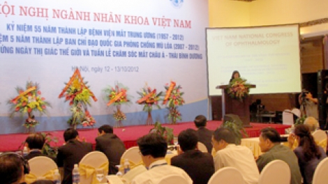 (VOV5) - Sáng nay (12/10), tại Hà Nội, hơn 600 đại biểu là các bác sỹ nhãn khoa, phẫu thuật viên, kỹ thuật viên các bệnh viện mắt, chuyên khoa mắt cả nước cùng nhiều chuyên gia nhãn khoa và các tổ chức quốc tế đã tham dự Hội nghị Phòng chồng mù lòa và Khoa học kỹ thuật ngành mắt VN 2012.