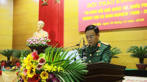 (VOV5) - "30 năm đổi mới quân sự, quốc phòng - Thành tựu và kinh nghiệm" là chủ đề cuộc Hội thảo khoa học do Bộ Quốc phòng tổ chức sáng 16/12 tại Hà Nội, nhân kỷ niệm 30 năm thực hiện nhiệm vụ đổi mới quân sự, quốc phòng (1986-2016).