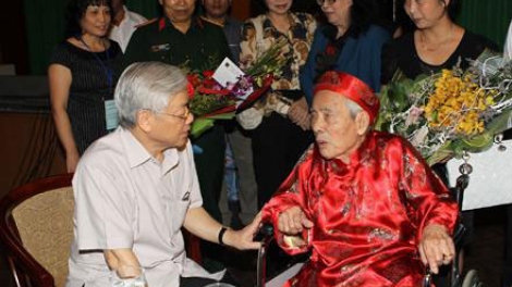 (VOV5)- Tối 26-9, tại Hà Nội, Tổng bí thư Nguyễn Phú Trọng đến chúc mừng; dự lễ tôn vinh nhà văn, nhà viết kịch Học Phi nhân dịp ông tròn 100 tuổi.