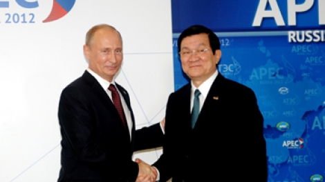 (VOV5) - Nhân dịp tham dự Hội nghị APEC 2012, Chủ tịch nước Trương Tấn Sang đã gặp Đại diện toàn quyền của Tổng thống Nga tại Viễn Đông kiêm Bộ trưởng phụ trách phát triển Viễn Đông Viktor Ishayev và Thống đốc vùng Primorie Vladimir Miklushevsky.