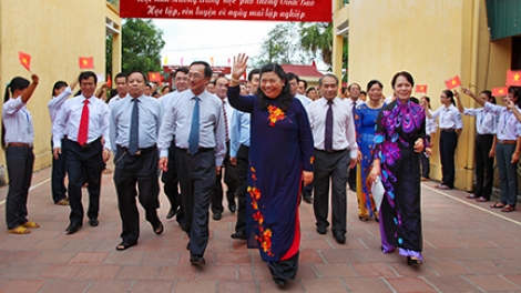(VOV5) - Chiều 01/09, Ủy viên Bộ Chính trị, Phó Chủ tịch Quốc hội Tòng Thị Phóng tới dự lễ khai giảng năm học 2012-2013 tại Trung học phổ thông Vĩnh Bảo, huyện Vĩnh Bảo, thành phố Hải Phòng.