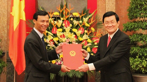 (VOV5) - Chiều nay (17/8), tại Phủ Chủ tịch, Chủ tịch nước Trương Tấn Sang đã dự và trao quyết định phong hàm đại sứ cho 38 cán bộ, công chức Bộ Ngoại giao.