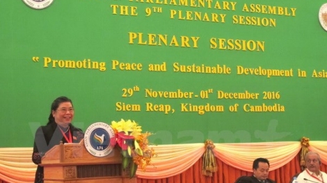 (VOV5) - Hội đồng Nghị viện châu Á (APA) tiến hành các phiên họp để thảo luận 21 dự thảo nghị quyết trình phiên họp toàn thể lần thứ 9 (APA-9) thông qua. Phó Chủ tịch Quốc hội Việt Nam Tòng Thị Phóng có bài tham luận quan trọng tại Hội nghị.