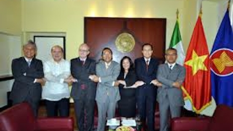 (VOV5) - Nhân kỷ niệm lần thứ 45 ngày thành lập Hiệp hội các quốc gia Đông Nam Á (ASEAN) và 17 năm ngày Việt Nam là thành viên chính thức của ASEAN, hôm qua, Đại sứ quán Việt Nam tại Italia đã tổ chức Lễ thượng cờ ASEAN.
