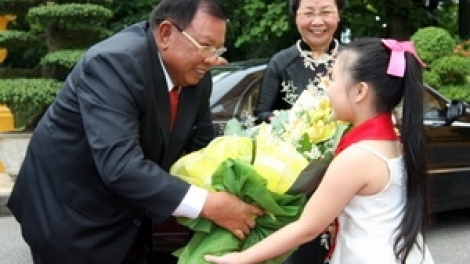 (VOV5) - Sau tỉnh Sóc Trăng, ngày 18/7, đoàn đại biểu cấp cao phật giáo Camphuchia do Đại Tăng thống Tep Vong làm trưởng đoàn đến thăm xã giao Ban Trị sự Phật giáo và Hội đoàn kết sư sãi Khmer yêu nước tỉnh Trà Vinh.