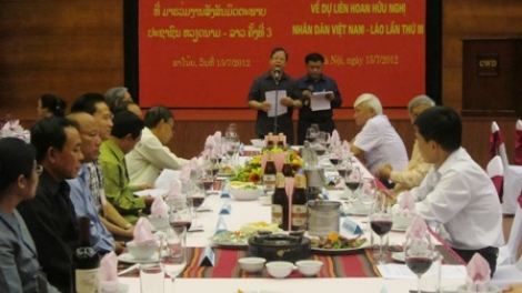 (VOV5) - Nhân dịp đoàn đại biểu nhân dân Lào và đoàn đại biểu nhân dân Việt Nam đến Thủ đô Hà Nội tham dự Liên hoan hữu nghị nhân dân Việt Nam - Lào lần thứ III năm 2012, tối 15/7, Liên hiệp các tổ chức hữu nghị Việt Nam, Hội hữu nghị Việt Nam - Lào tổ chức buổi gặp mặt thân mật chào mừng đoàn đại biểu.