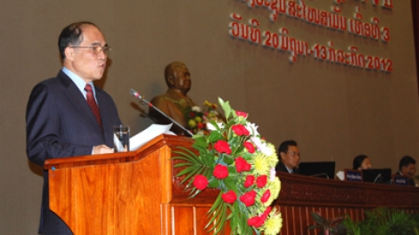 Chủ tịch QH Nguyễn Sinh Hùng phát biểu tại Kỳ họp thứ 3, Quốc hội Lào khóa VII