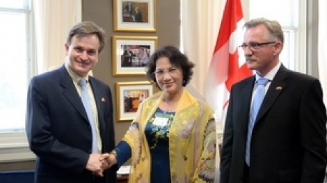 (VOV5) - Trong hai ngày từ ngày 28 đến ngày 29 tháng 6, Phó Chủ tịch Quốc hội Nguyễn Thị Kim Ngân thăm Canada. Đoàn đã đến chào Toàn quyền Canada David Johnston và có các cuộc gặp, làm việc với Lãnh đạo Quốc hội Canada, trong đó có Chủ tịch Thượng viện Noel Kinsella và Phó Chủ tịch Nhóm nghị sĩ hữu nghị Canada - Việt Nam Hạ nghị sĩ Andrew Saxton.
