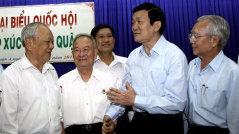 (VOV) - Sáng 23/6, Chủ tịch nước Trương Tấn Sang và các đại biểu Quốc hội tổ 1, đơn vị thành phố Hồ Chí minh có buổi tiếp xúc với hơn 200 cử tri tại quận 4.