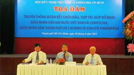 (VOV5) - Sáng nay (20/6), tại thành phố Hồ Chí Minh, Liên hiệp các tổ chức hữu nghị và Hội hữu nghị Việt Nam – Campuchia tổ chức tọa đàm “Truyền thống đoàn kết chiến đấu, hợp tác giúp đỡ nhau giữa nhân dân hai nước Việt Nam – Campuchia, giữa nhân dân thành phố Hồ Chí Minh và kinh đô PhnômPênh”.