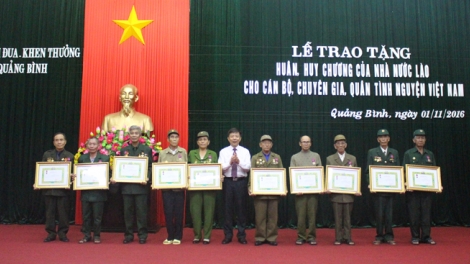(VOV5) - Lễ trao tặng Huân, Huy chương của Nhà nước Cộng hòa Dân chủ Nhân dân Lào cho 43 cán bộ, chuyên gia, quân tình nguyện tỉnh Quảng Bình.