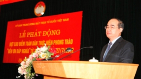 (VOV5) - Sáng 18/5, tại Hà Nội, Ủy ban Trung ương Mặt trận Tổ quốc Việt Nam phát động đợt cao điểm toàn dân thực hiện phong trào “Đền ơn đáp nghĩa” từ ngày 19/5 đến ngày 27/7/2012.