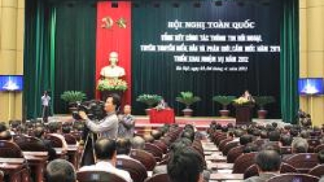 (VOV)- Hôm nay, tại Hà Nội, Ban Tuyên giáo Trung ương khai mạc Hội nghị toàn quốc tổng kết công tác thông tin đối ngoại, tuyên truyền biển, đảo và phân giới, cắm mốc năm 2011; triển khai nhiệm vụ năm 2012.