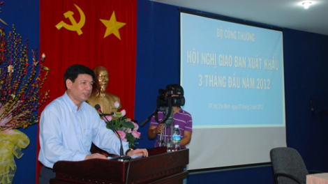 (VOV) - Chiều 27/3, tại thành phố Hồ Chí Minh, Thứ thưởng Bộ Công thương Nguyễn Thành Biên chủ trì hội nghị giao ban xuất khẩu 3 tháng đầu năm 2012 với các doanh nghiệp, hiệp hội ngành hàng nhằm tìm biện pháp thúc đẩy xuất khẩu.