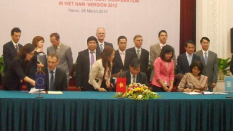 (VOV) - Ngày 28/3 tại Hà Nội, đại diện Liên hợp quốc, Ủy ban Châu Âu, các Chính phủ thành viên Liên minh Châu Âu, Phái đoàn Liên minh Châu Âu (EU) và Chính phủ Việt Nam cùng ký kết văn bản hướng dẫn mới về việc áp dụng thống nhất một danh mục định mức chuẩn cho các khoản chi phí trong nước của các dự án ODA tại Việt Nam – bản cập nhật năm 2012.