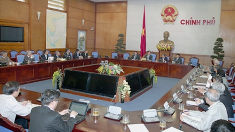 (VOV) - Sáng 25/3, tại trụ sở Chính phủ, Thủ tướng Nguyễn Tấn Dũng đã làm việc với hơn 30 nhà khoa học và chuyên gia kinh tế hàng đầu trong nước nhằm lắng nghe các ý kiến đánh giá về tình hình kinh tế quý một năm 2012 cũng như các vấn đề trong điều hành chính sách vĩ mô để thực hiện mục tiêu kiềm chế lạm phát, ổn định kinh tế vĩ mô, duy trì tăng trưởng hợp lý và đảm bảo an sinh xã hội.