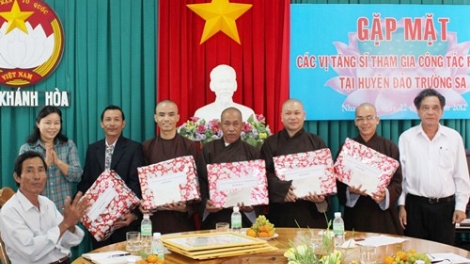 Ban Thường trực UBMTTQVN tỉnh Khánh Hòa vừa tổ chức cuộc gặp mặt thân mật bốn tăng sĩ và đại diện gia đình hai tăng sĩ (bận công tác xa) thuộc Giáo hội Phật giáo VN tỉnh Khánh Hòa tình nguyện ra huyện đảo Trường Sa, tỉnh Khánh Hòa làm nhiệm vụ Phật sự.