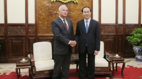(VOV5) - Phát biểu tại buổi tiếp Đại sứ Belarus tại Việt Nam Valery Sadokho, đến chào từ biệt nhân kết thúc nhiệm kỳ công tác, Chủ tịch nước Trần Đại Quang đánh giá cao bước phát triển tích cực của quan hệ hợp tác nhiều mặt giữa Việt Nam và Belarus; trong đó hai bên đã phối hợp chặt chẽ trên các diễn đàn quốc tế, nhất là tại Liên hợp quốc.