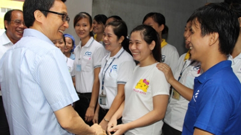 (VOV5) - Phó Thủ tướng Vũ Đức Đam cùng đại diện các Bộ, ngành và Tổng Liên đoàn lao động Việt Nam tới khảo sát tình hình đời sống công nhân, người lao động tại các khu công nghiệp tỉnh Bình Dương.
