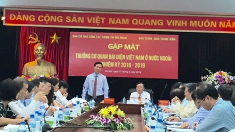 (VOV5) - Chiều 21/6, tại trụ sở Ban tuyên giáo Trung ương, Ban Tuyên giáo Trung ương phối hợp với Ban chỉ đạo công tác thông tin đối ngoại tổ chức buổi gặp gỡ với các trưởng cơ quan đại diện Việt Nam tại nước ngoài nhiệm kỳ 2016-2019.
