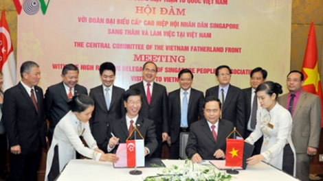 (VOV5) - Chiều 20/6, tại Hà Nội, Ủy ban Trung ương Mặt trận Tổ quốc Việt Nam và Hiệp hội Nhân dân Singapore ký biên bản ghi nhớ Chương trình hợp tác giữa hai bên giai đoạn 2017-2019.