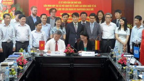 (VOV5) - Xây dựng khung thể chế đủ mạnh cần thiết cho sự phát triển bền vững hợp tác xã Việt Nam, nâng cao năng lực cho các hợp tác xã trong cả nước là nội dung chính tại Lễ ký biên bản ghi nhớ giữa Liên minh Hợp tác xã Việt Nam với Tổ chức Lao động quốc tế và Liên đoàn Hợp tác xã Raiffeisen, Cộng hòa Liên bang Đức.