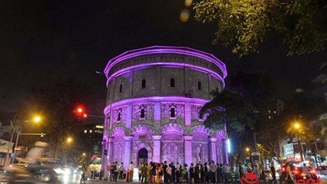 (VOV5) - Toàn bộ tháp nước Hàng Đậu được trang trí bởi hệ thống đèn Led thay đổi màu của hãng Philips với công nghệ tiên tiến nhất hiện nay.