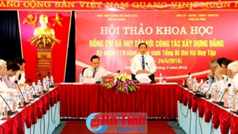(VOV5) - Kỷ niệm 110 năm ngày sinh Tổng Bí thư Ban chấp hành Trung ương Đảng Cộng sản Việt Nam Hà Huy Tập (24/04/1906- 24/04/2016), tại thành phố Hà Tĩnh, diễn ra hội thảo khoa học:“Tổng Bí thư Hà Huy Tập với công tác xây dựng Đảng”.